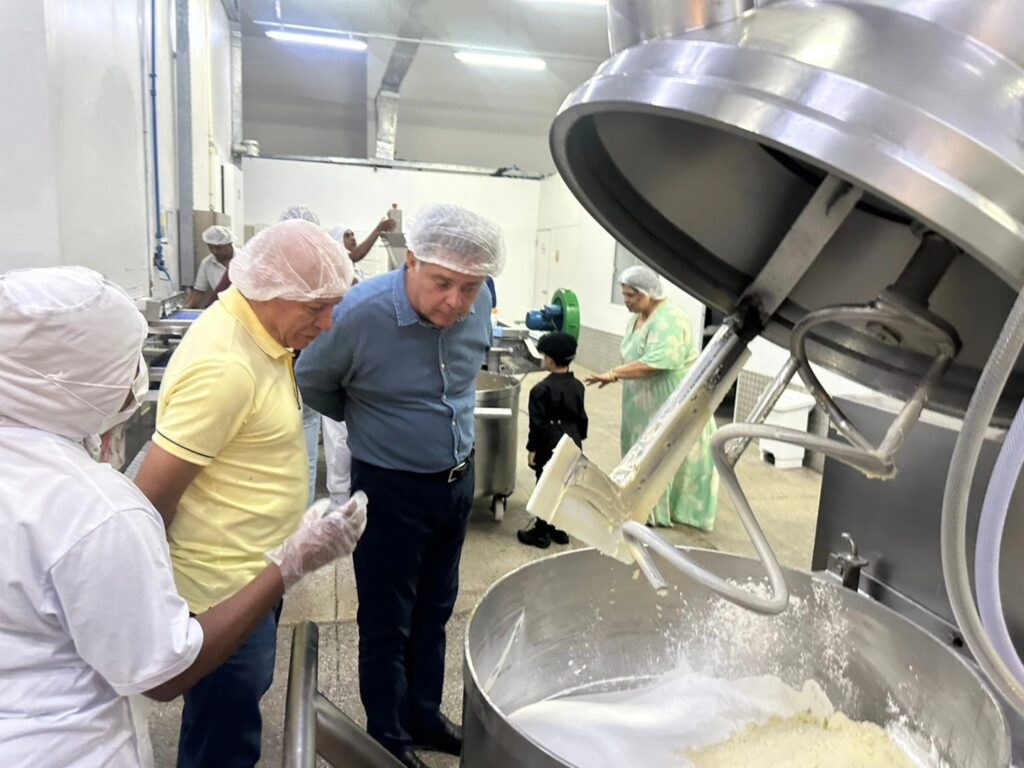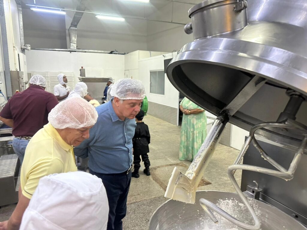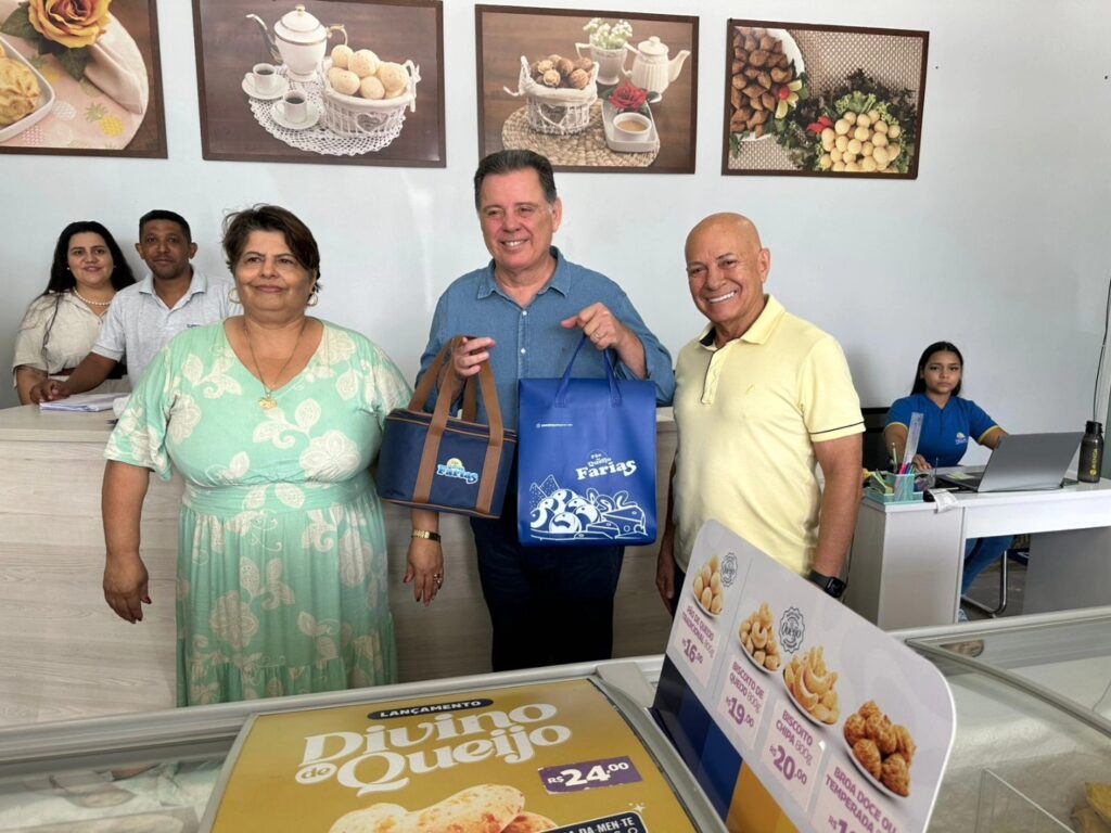 Professor Alcides visita empresa Pão de Queijo Farias ao lado de Marconi Perillo
