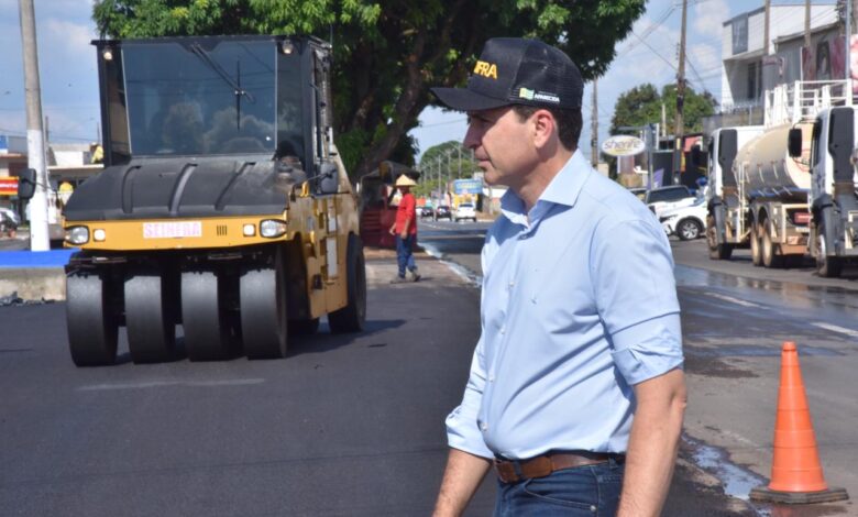 Vilela conferiu pessoalmente a aplicação da capa asfáltica na ilha entre as duas pistas. É onde ocorre a feirinha do Parque das Nações, às quintas-feiras. Ele explicou que a Avenida das Nações foi completamente revitalizada.